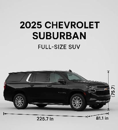 Clocking in at 225.7 inches—yes, nearly 19 feet—the Suburban is Chevy’s largest, longest-running SUV. It’s basically a luxury hotel on wheels, and it doesn’t flinch when you ask it to haul nine people, their gear, and a week’s worth of camping equipment.